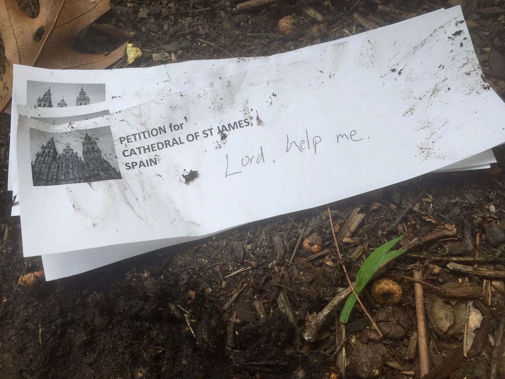 On one particularly punishing day of walking—a day with intermittent rain---I stopped to take a rest under a tree. I was exhausted, and my back and my feet really hurt. As I took off my heavy backpack and my shoes, the prayer petition sheets fell out of a pocket, and a sudden gust of wind blew a bunch of them away. I panicked, leapt up immediately, and found myself running desperately in my socks after about a dozen of the papers. One after another, I was able to snatch them back until there was just one left. It kept blowing away as I neared it, and it finally landed in a very muddy field. I didn’t care about turning my socks into mud rags, and ran through the field to retrieve the petition. When I picked it up, it was dirty, but I was still able to read what was written on it. All it said was, “Lord, help me.” I walked back to my rest stop and sat down, holding the petition in my hand. Lord, help me. And suddenly I felt a rush of hot tears welling in my eyes. For a moment I felt like a helpless little kid, all alone on this endless path with the prayers of all these people, unable to do much to relieve them of their pain or their suffering. Unable to help myself, for that matter. All I could do was to carry them and their prayers to the tomb of the saint whose name I share. Lord, help me. Help all of us.